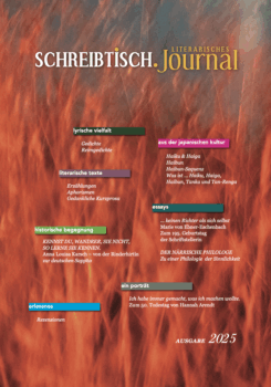 18,00 € inkl. MwStSCHREIBTISCH – so lautet der Titel des literarischen Journals, das mit der Ausgabe 2017 sein Debüt feierte. Das Magazin vereint eine Vielzahl literarischer Gattungen: Erzählungen, Gedichte, Kurzprosa, Aphorismen, Essay, Haiku, Haibun, u.v.m.