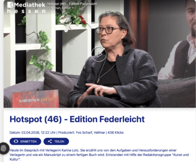 Gespräch mit Verlegerin Karina Lotz. Sie erzählt uns von den Aufgaben und Herausforderungen einer Verlegerin und wie ein Manuskript zu einem fertigen Buch wird. Entstanden mit […]Aktuelles Verlagsprogramm